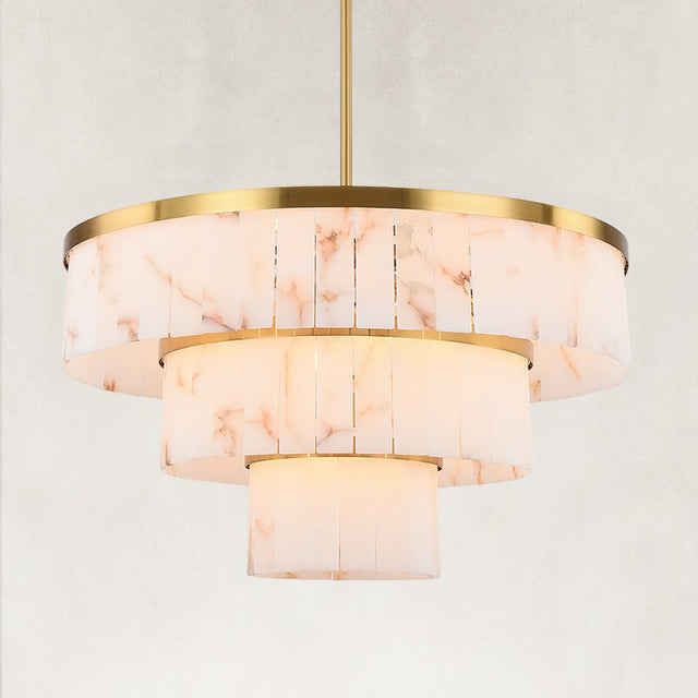 Solenne Alabaster Round Chandelier 34" - Brass is backordered and will ship as soon as it is back in stock.
