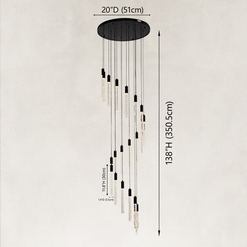 The Lumora Series captures the artistry of modern chandeliers with a sculptural, cascading design. Each fixture features LED-illuminated crystal bars arranged at varying heights to create a sparkling, ambient glow. Designed for high ceilings and grand interiors, Lumora chandeliers bring contemporary elegance and visual drama to entryways, staircases, and living spaces. Adjustable suspension ensures versatile installation, while the sculptural composition makes each piece a statement of refined craftsmanship.