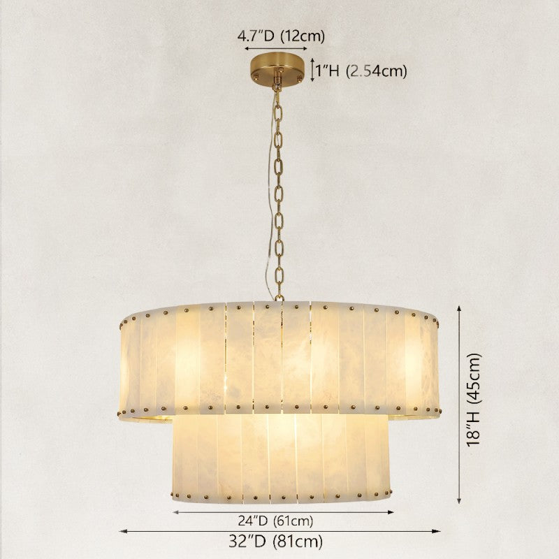 Solara Alabaster 2-Tier Round Chandelier 32"